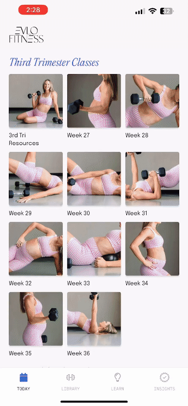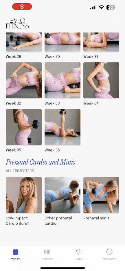 When you sign up for Evlo, you’ll be taken through an onboarding assessment. Your Today tab will populate the Prenatal Program and instruct you on where to start. No more guesswork or endless scrolling.